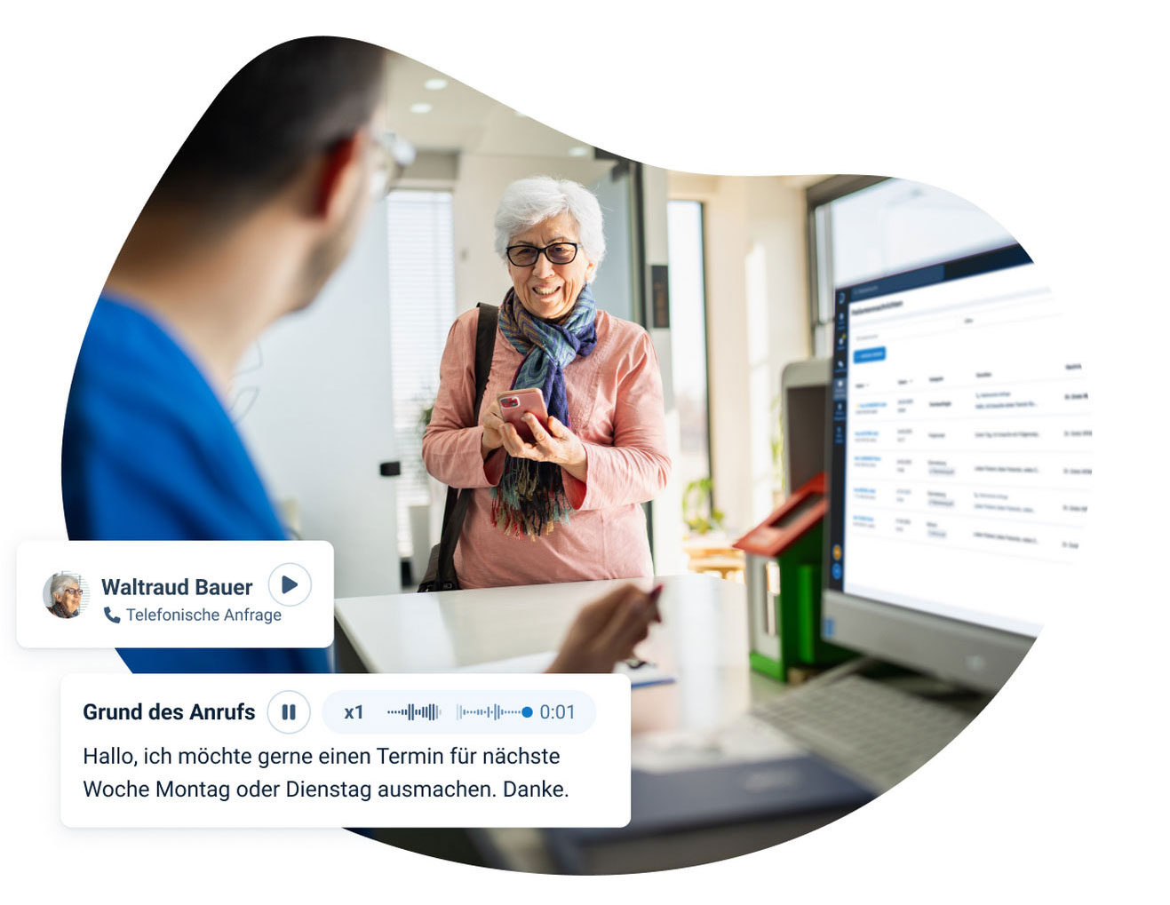 Smart und nahtlos in die digitale Rezeption integriert: Dank automatischer Patientenerkennung und direkter Terminbuchung im Doctolib-Kalender erleben Sie echte Entlastung – bei 100 % Kontrolle über alle eingehenden Anrufe und optimaler Erreichbarkeit.